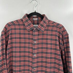 CULTURATA Men Red Gray Plaid Flannel Tailored Fit Long Sleeve Button Up Shirt XL