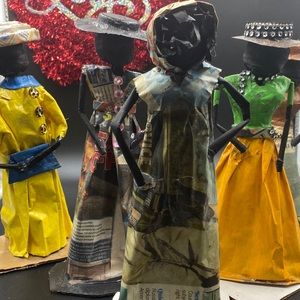 The dolls are made of newspaper, bottle top, and paint. It' great to preserve the world!