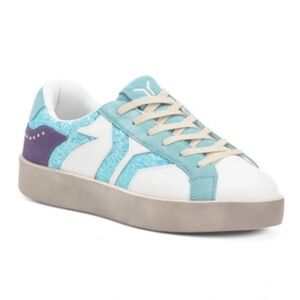 Color:White/Blue Glitter glitter accents, brand logo details, cushioned collar, tongue and footbed, color block design, suede accents rounded toe leather and textile upper, man made sole lace up closure imported