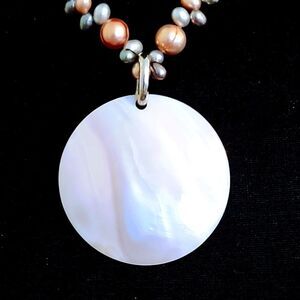 CULTURED PEARL CHOKER CRUSTACEANCORE NECKLACE WITH REMOVABLE MOTHER OF PEARL PENDANT. NEW NO TAGS.