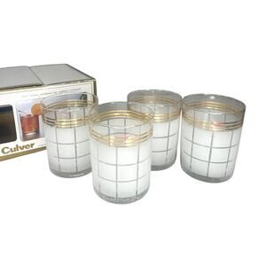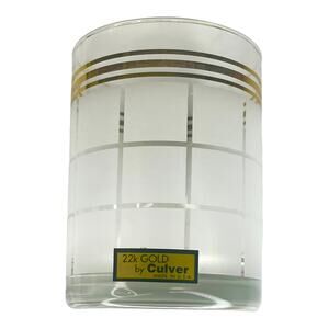 CULVER Double Old Fashion GLASSES 14oz Clear Frosted 22K Gold Trim USA New Box