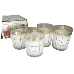 • This set of 4 Double Old Fashioned "Rocks" glasses has been handsomely frosted and decorated with 22 Karat gold.