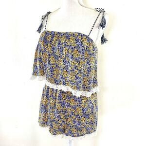 CUPCAKES AND CASHMERE Andria Sleeveless Romper Size M Floral Print Blue Yellow