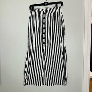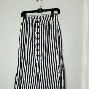 CUPCAKES AND CASHMERE Black White Striped Faux Front Button Midi Skirt Size 2