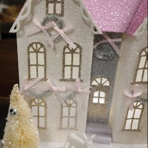 New with tags- CUPCAKES AND CASHMERE Christmas Pink White Putz Victorian House Led Light Up