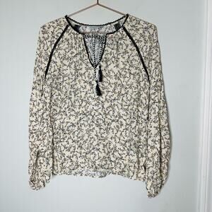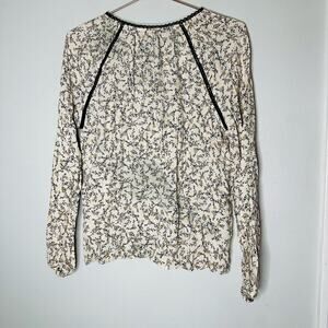 CUPCAKES AND CASHMERE Halston Cameo Rose Print V-Neck Blouse Size Large