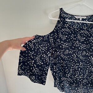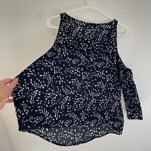 CUPCAKES AND CASHMERE STITCH FIX Lisbon Cold Shoulder Top Navy Blue White Boho S