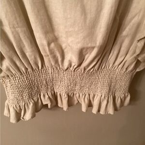 CUPCAKES AND CASHMERE SZ XL OATMEAL SMOCKED FLUTTER SLEEVE CROPPED LINEN TOP