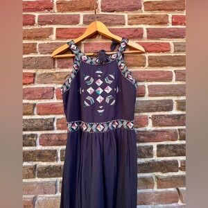 CUPCAKES AND CASHMERE Sleeveless Embroidery Navy Blue Long Maxi Dress Size 0