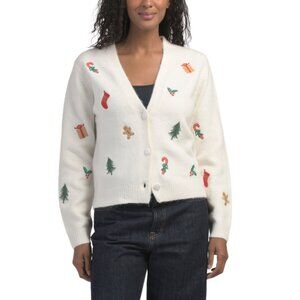 CUPCAKES & CASHMERE Ivory Combo Storybook Embroidered Icons Cardigan