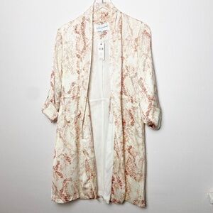 The perfect silky look & feel layering piece. Can be worn open like kimono or cinched up with the drawstring inside as a closed lightweight jacket. Fully lined.