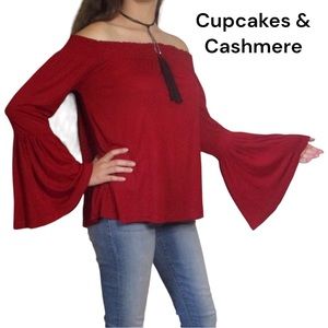 🔴 CUPCAKES & CASHMERE Red Bell Sleeve Top NEW