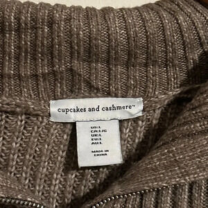 CUPCAKES & CASHMERE Ribbed Sweater Dress 1/4 Zip Brown Large