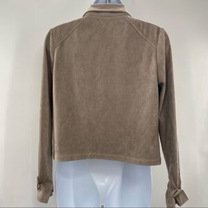 CUPCAKES & CASHMERE Robin Faux Suede Drape Front Cropped Moto Jacket