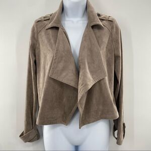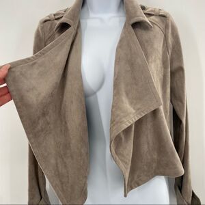Women’s Cupcakes and Cashmere Faux Suede Robin Drape front Cropped Moto Jacket Coat