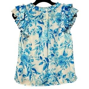 CUPCAKES & CASHMERE Ruffled Floral Rose Print Flutter Sleeve Pull On Blouse XS