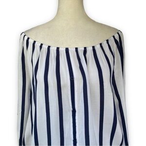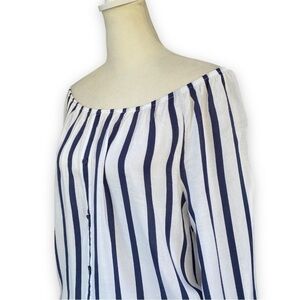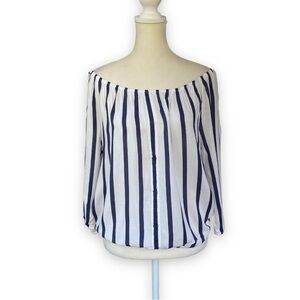 Cupcakes & Cashmere White and Navy Stripe Off Shoulder Top Size Small