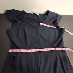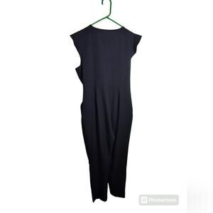 CUPCAKES and CASHMERE navy jumpsuit button front flutter sleeve tapered size 6
