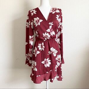 CUPCAKES and Cashmere Jarrett Red Floral Ruffle Wrap Hawaiian Dress Women’s M