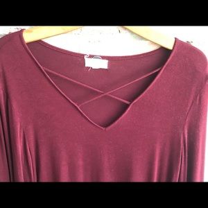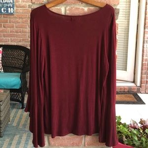 CUPIO Burgundy Maroon Red Long Bell Sleeved Flowy Top Large EUC!