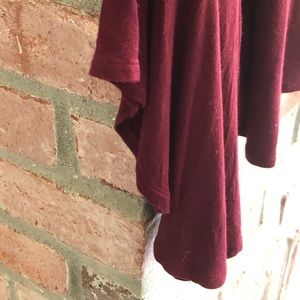 For your consideration: a gently loved long bell (graduated bell) sleeved burgundy top from CUPIO in size Large. Featuring a cross cross design in front and the distinctive graduated bell shape, you’ll look (and feel!) amazing. Constructed of 95% viscose and 5% spandex, it is soft, flowy and comfortable.