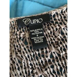 CUPIO Grey Sheer Mesh Loose Knit Short Sleeve Sheer Sweater Small