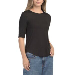 CUPIO Jet Black Elbow Sleeve Crew Neck Shirt Tail Hem Top