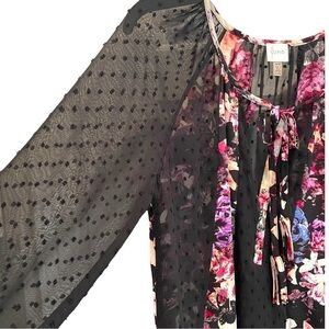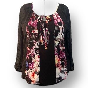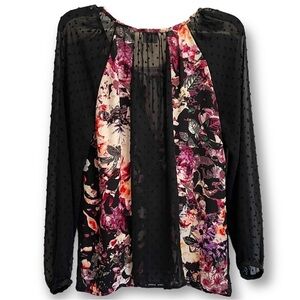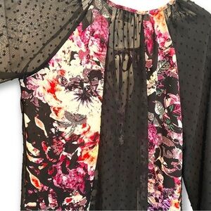 CUPIO Sheer Bohemian Floral Long Sleeve Blouse