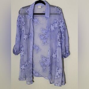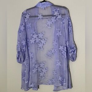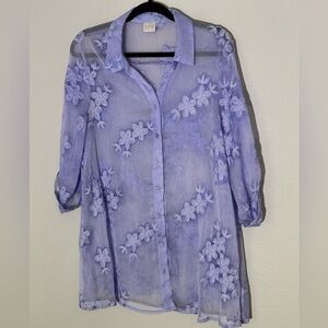 CUPIO Sheer Lavender Button Up with 3/4 Sleeves and Embroidery Detail, Large