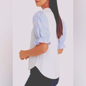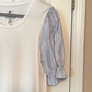 SUPER CUTE TOP‼️ Striped embroidered sleeves add contrast to this t-shirt from Cupio.