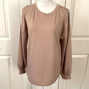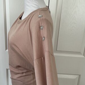CUPIO Crystal Floral Detail On Shoulder Dressed Up Sweatshirt Rounded Hem