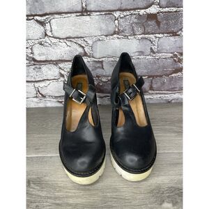 CUPLE Black Leather Platform Mary Jane Strap White Heels Women Sz 36EU/6M US