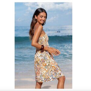 CUPSHE Beaded O-Ring Halter Paisley Mini Dress Elastic Bodice Tie Neck NWT S