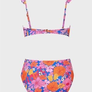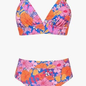 CUPSHE Bikini 2 Piece Swimsuit High Waisted Bottom Floral Print Ruffle V Neck L