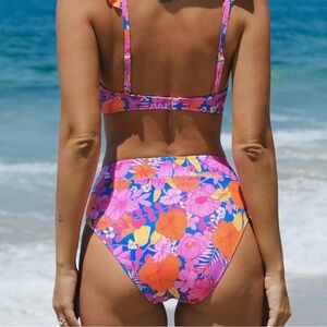 CUPSHE Bikini 2 Piece Swimsuit High Waisted Bottom Floral Print Ruffle V Neck L