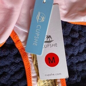 CUPSHE Bikini Cheeky Bottom ruffle top Swim Suit Beach pool summer Orange Sz M