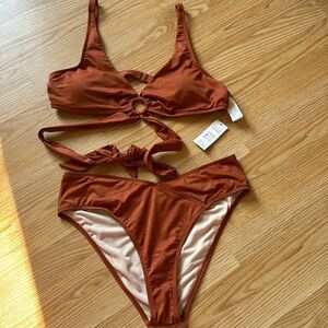 CUPSHE Bikini Two Piece Swimsuit Wrap Back Adjustable Tie O Ring Top. NWT. XL