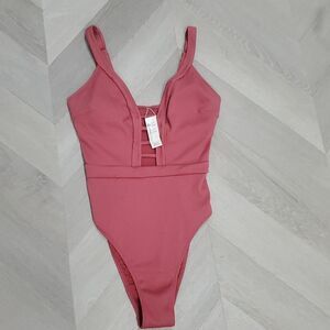 CUPSHE Carson Rib Cut Out Solid Strappy Pink One Piece Swimsuit, Nwt, Med