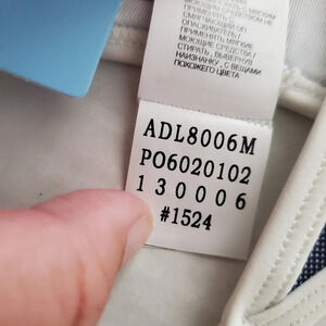 Blue and white low-rise bikini bottoms with white trim and string sides. Size S. New with tags.