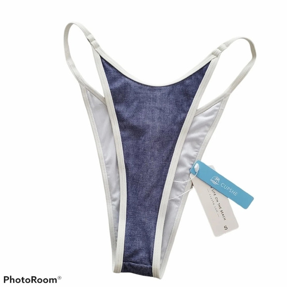 CUPSHE Contrast Trimmed Super Cheeky Bikini Bottoms in Blue Size S NWT