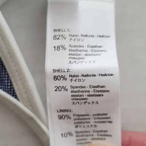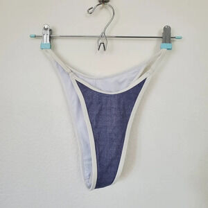 Blue and white low-rise bikini bottoms with white trim and string sides. Size S. New with tags.