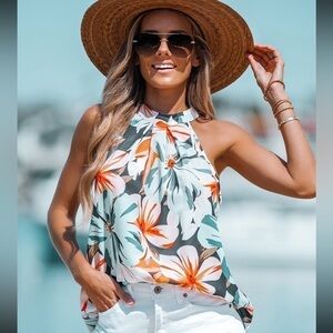 CUPSHE Floral Print Halter Top