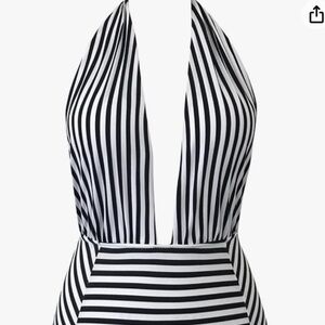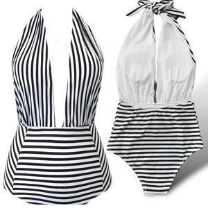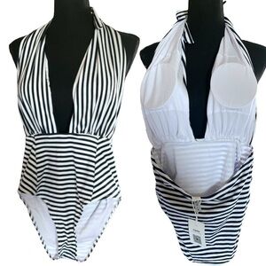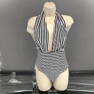 CUPSHE Geometric Striped One Piece Backout Swimsuit Halter-Tie Size Med…NWT