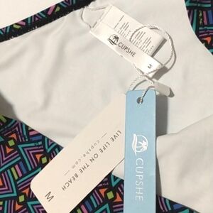 CUPSHE HIGH-WAIST GEOMETRIC BIKINI BOTTOM SIZE MEDIUM NWT