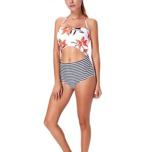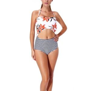 CUPSHE Halter One Piece High Waist Floral Stripe Bikini Swimwear in size Small