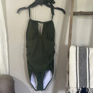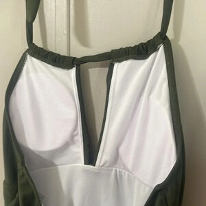 Keyhole halter top olive green one piece swimsuit