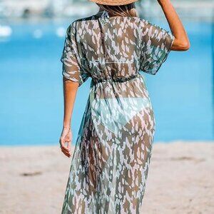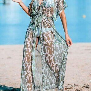 CUPSHE MAXI SHEER OPEN FRONT KIMONO DRAWSTRING SWIMSUIT COVER UP SIZE SMALL NWT
