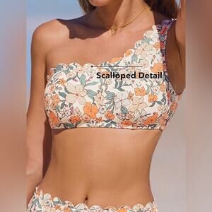 CUPSHE NWT Women's Floral Bikini Set Swimsuit One Shoulder Wide Strap Size Large