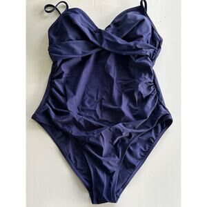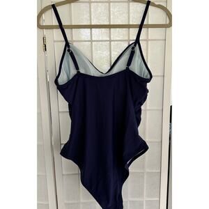 CUPSHE One Piece Navy Blue Ruched Adjustable Straps Swimsuit Size Large NWT