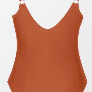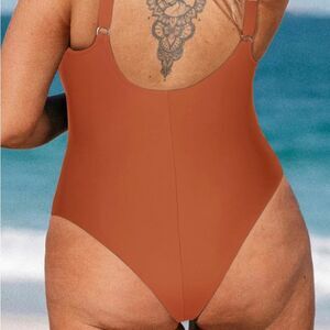 CUPSHE One Piece Swimsuit V Neck Mesh Sheer Tummy Burnt Orange Size 1X NWT